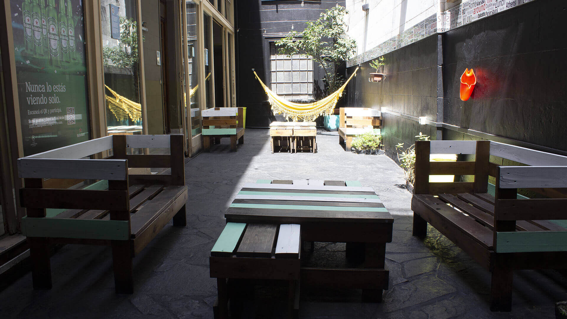 Nuestra sala de estar especialmente diseñada para poder leer, escuchar música, ver TV o socializar con otros huéspedes. Además, nuestro espacio coworking para que estés al día con el trabajo y un área para clases de yoga, español y tango. En nuestro patio podrás relajarte en una hamaca y en nuestra gran terraza con parrilla, tomar sol y sentirte como en casa!